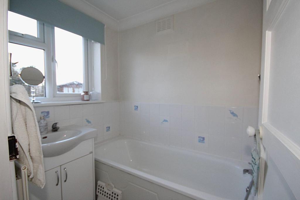 Bathroom: Fitted with two-piece suite comprising panelled bath and vanity wash hand basin, window to rear elevation, radiator, tiled flooring.