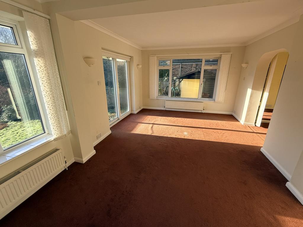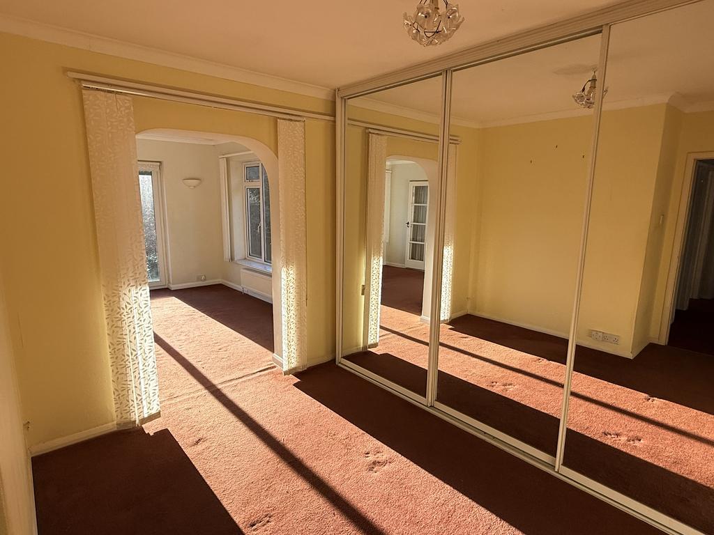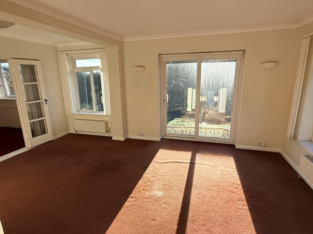 The property accommodation comprises an enclosed entrance porch leading through to a central front door opening into an entrance hallway off which is a living room with south facing window and brick surround gas fireplace and connecting French doors leading to master bedroom / sitting room with double aspect windows including sliding French doors leading out to the garden. A dressing room is accessed from the master bedroom with built in wardrobes and connecting door leading back to the entrance hall. A shower room /WC is accessed from the entrance hallway along with a second double again with built in wardrobes and north facing window. The kitchen is also accessed from the hallway with painted kitchen units with laminate worktops, stainless steel sink, gas hob with extractor hood above and electric oven below. A utility room is accessed from the kitchen where there is plumbing for a washing machine as well as access to the garden and rear door leading to the attached garage.
