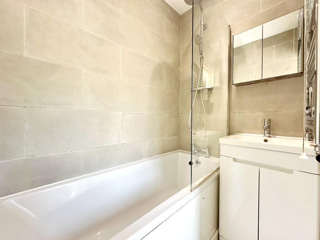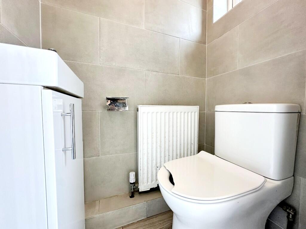 The family bathroom is located on the ground floor and finished with sleek and contemporary styles, featuring a full-sized bathtub with shower attachment, wash basin, and a separate WC, all finished with stylish and modern tiling. Upstairs, the home features three generously sized bedrooms-two doubles and a spacious single-each well-lit with neutral décor, ready to move into or personalise.