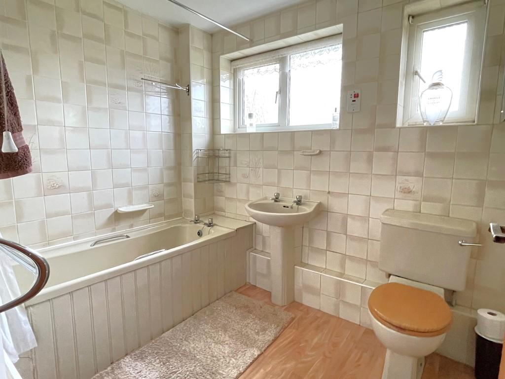 FAMILY BATHROOM Two windows to rear, panel enclosed bath, low level W.C, hand wash basin, heated towel rail, radiator.