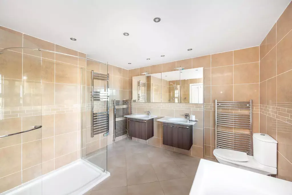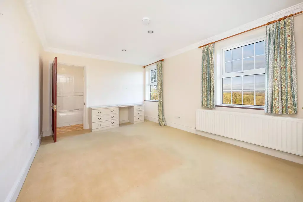 The principal bedroom suite is complemented by a dressing room and a large en-suite bathroom. Four additional bedrooms are arranged across the property, three benefitting from en-suite facilities, together with a family bathroom.