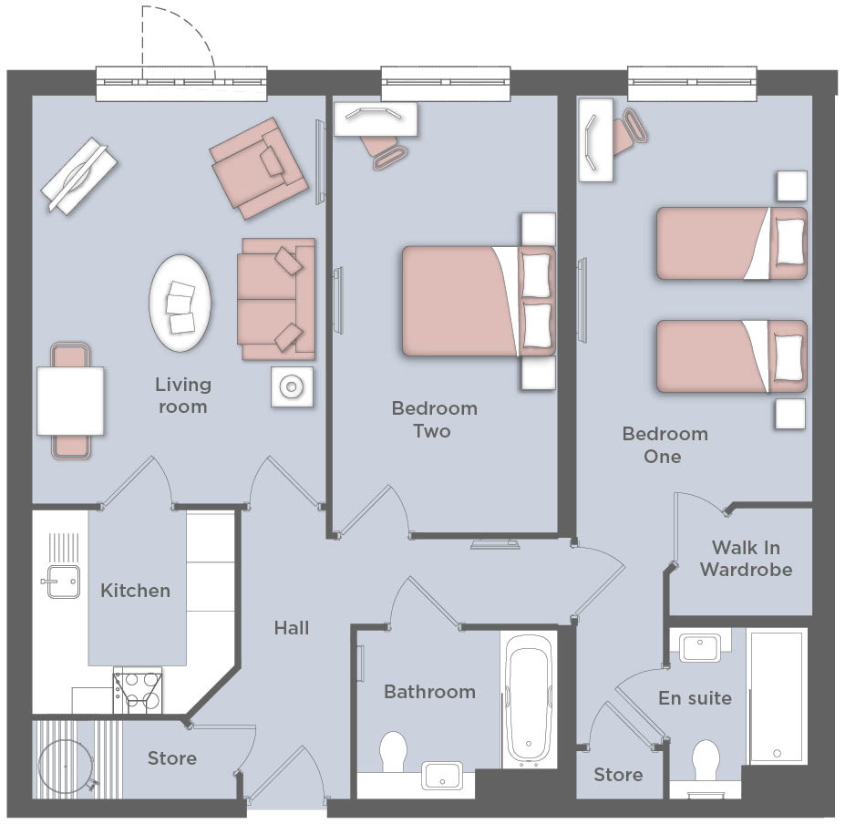All apartments are completely self-contained with their own front door, providing you with privacy and peace and quiet when you want it. There is a choice of one and two bedroom apartments and they may all vary slightly when it comes to dimensions and position of rooms.