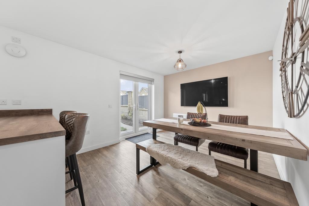 The lounge is front facing with neutral wall décor with feature wall panelling and Amtico flooring. There is ample space for lounge furniture and furnishings -. The window in the lounge allows good natural light.