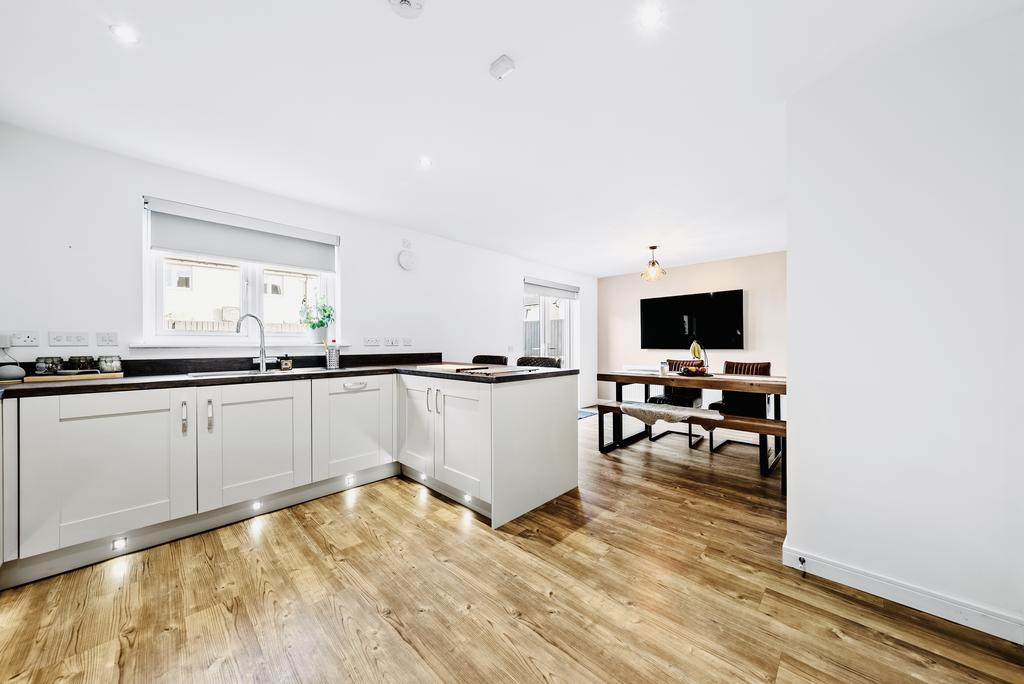 - Rear dining kitchen, designed and finished to a high standard with integrated appliances and French doors leading to the rear garden