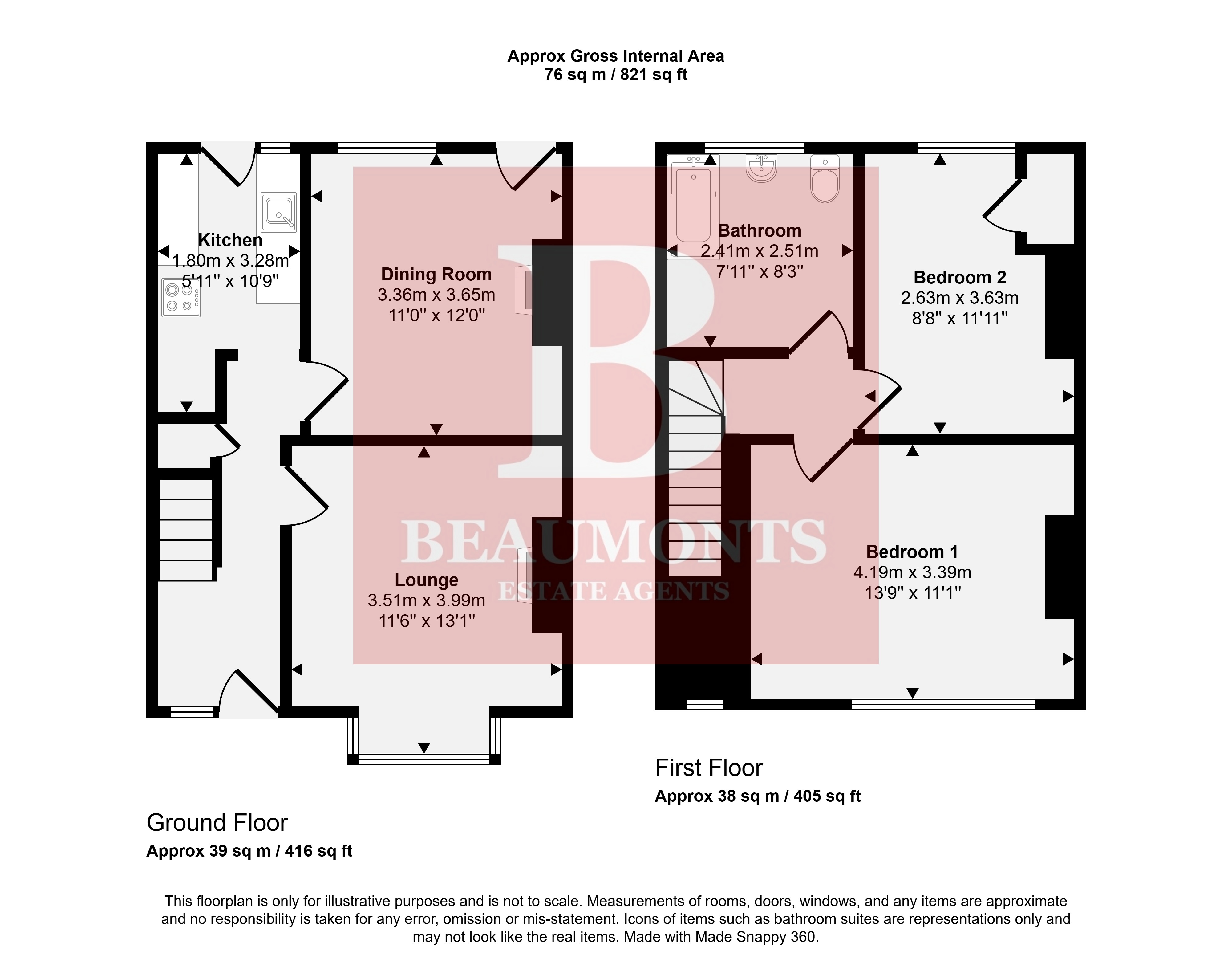 FIRST FLOOR: Two Bedrooms * Spacious Family Bathroom with white suite *