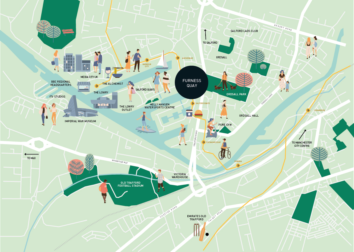 Furness Quay's exceptional location offers easy access to Manchester city centre via bike, tram, bus, or car. The Salford Quays Metrolink stop is just a 5-minute walk away, making commuting a breeze. Salford Quays itself is a cultural, sporting, and leisure hub, with ongoing investment and regeneration plans ensuring it remains a sought-after location.