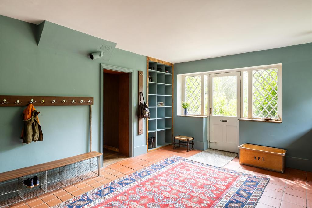The formal reception rooms flow well and are very well-proportioned. To the rear, the double aspect sitting room and the dining room both have multiple sets of French doors opening out to the rear terrace and gardens creating the perfect space for entertaining. The wonderful kitchen/breakfast room is also double aspect with French doors opening out to the gardens. The beautifully appointed kitchen includes fitted units, an Aga cooker and fabulous windows with wooden shutters.