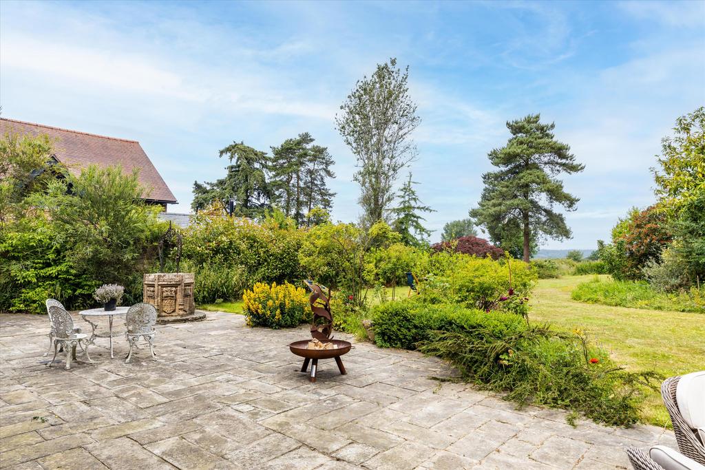 To the rear of the house there is a large paved terrace, ideal for entertaining and al fresco dining whilst enjoying the fabulous views. The terrace leads on to the delightful lawned gardens which include a multitude of mature trees, shrubs and plants as well as a small pond. The beautiful gardens provide a high degree of privacy and in all the property extends to just under an acre.