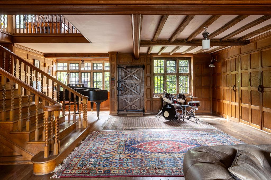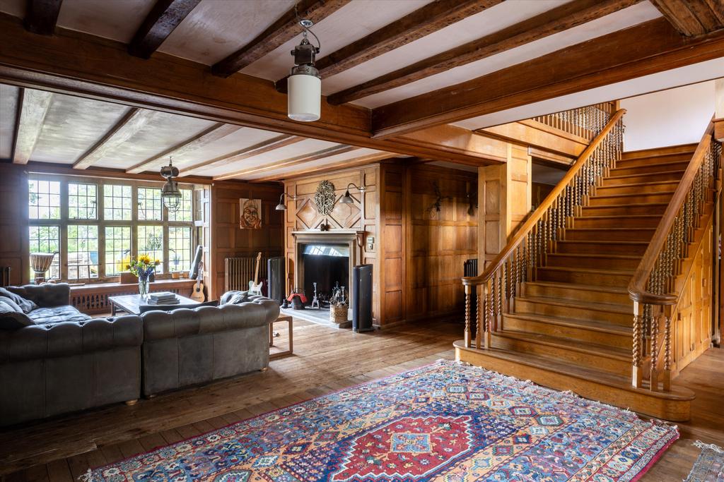 The front door opens into a magnificent reception hallway which has wood panelled walls, ornate fireplace and leaded light windows. There is also a fantastic broad oak staircase with ornate balustrades leading to a wonderful first floor galleried landing with library with fitted bookshelves and sitting area.