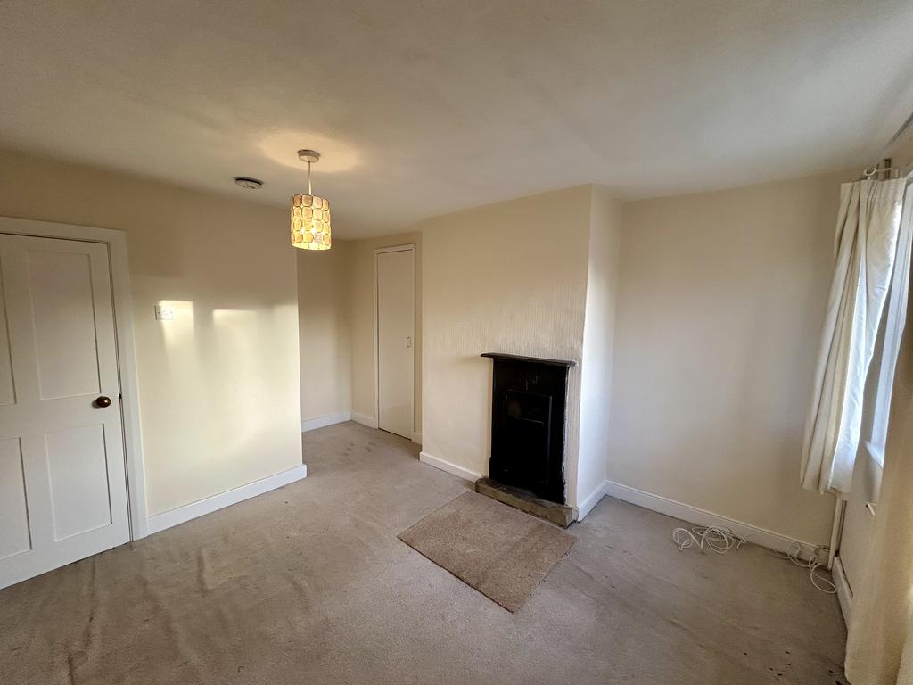A bright spacious room with new laminate flooring, beautiful fireplace, black exposed beam and storage cupboard.