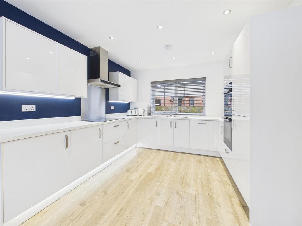 Kitchen/Diner - UPVC double glazed windows to the front, fitted with eye and base level units featuring roll edge worktops, sink with drainer, electric double oven with separate induction hob and hood, built-in fridge/freezer and dishwasher. The kitchen also benefits from recessed downlights, multiple power points, and two radiators. There is a door leading to the utility room and an open plan connection directly into the family area.