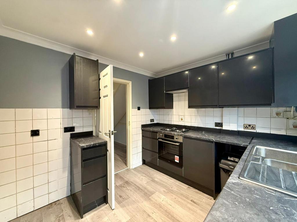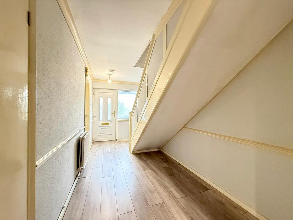 The ground floor comprises a welcoming living room with double glazing window front and back, and a kitchen space with brand new cabinets. Upstairs, the property offers three bedrooms with new carpets and built in wardrobes, along with a family walk in shower room, providing a practical layout for everyday living.