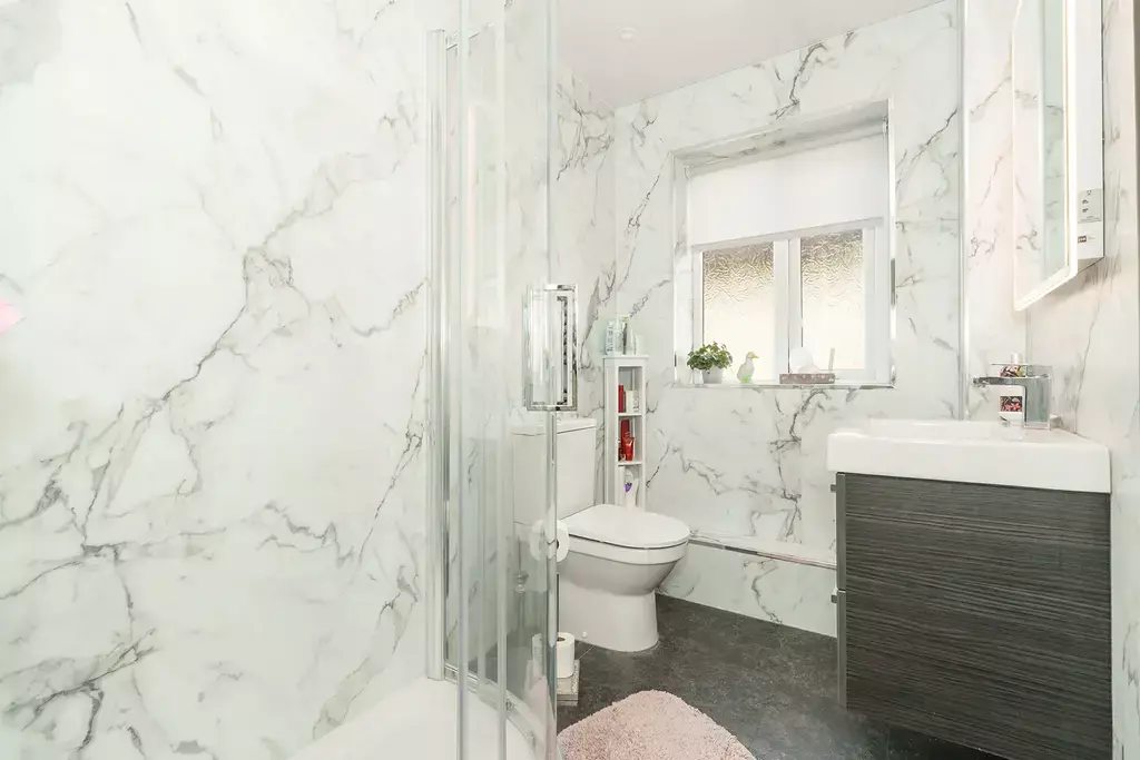 The property also features a separate modern kitchen, thoughtfully designed with breakfast bar seating, creating a practical and sociable space for everyday family life.