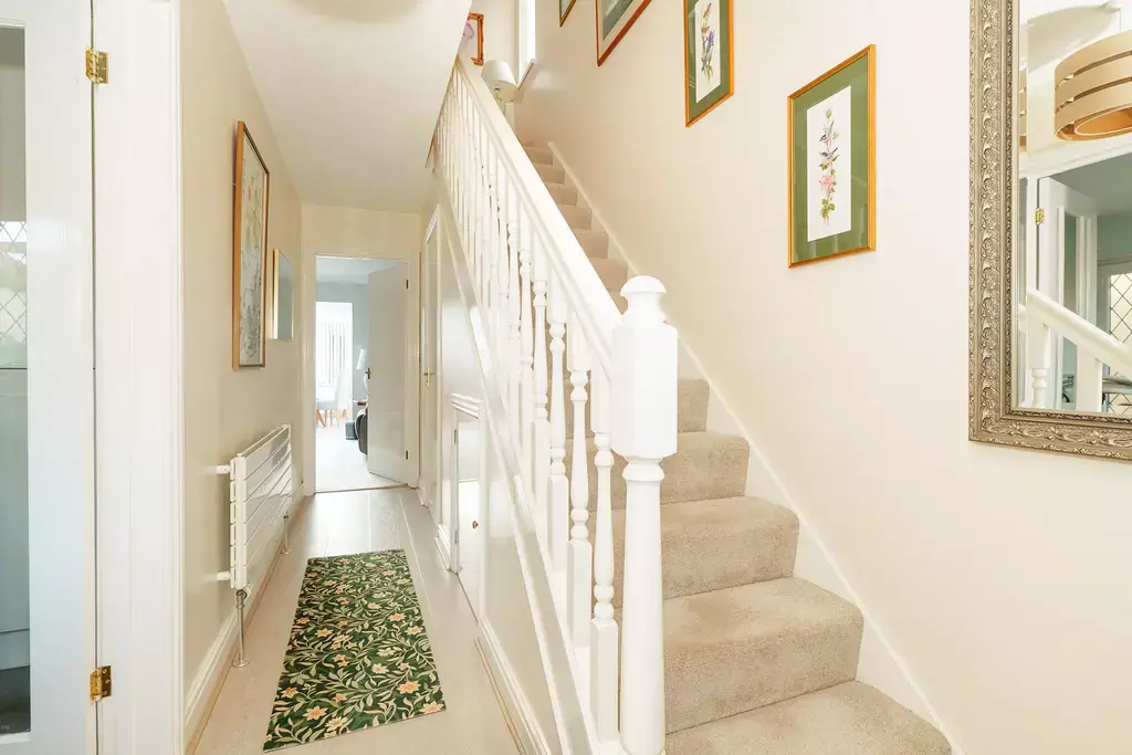 To the first floor there are three bedrooms, two of which are complemented by fitted storage, along with a modern and stylish shower room.