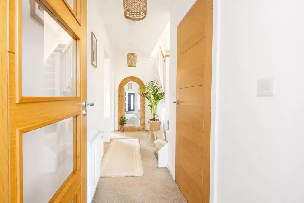 - Entrance porch, welcoming reception hall with storage cupboard and a cloakroom (WC)