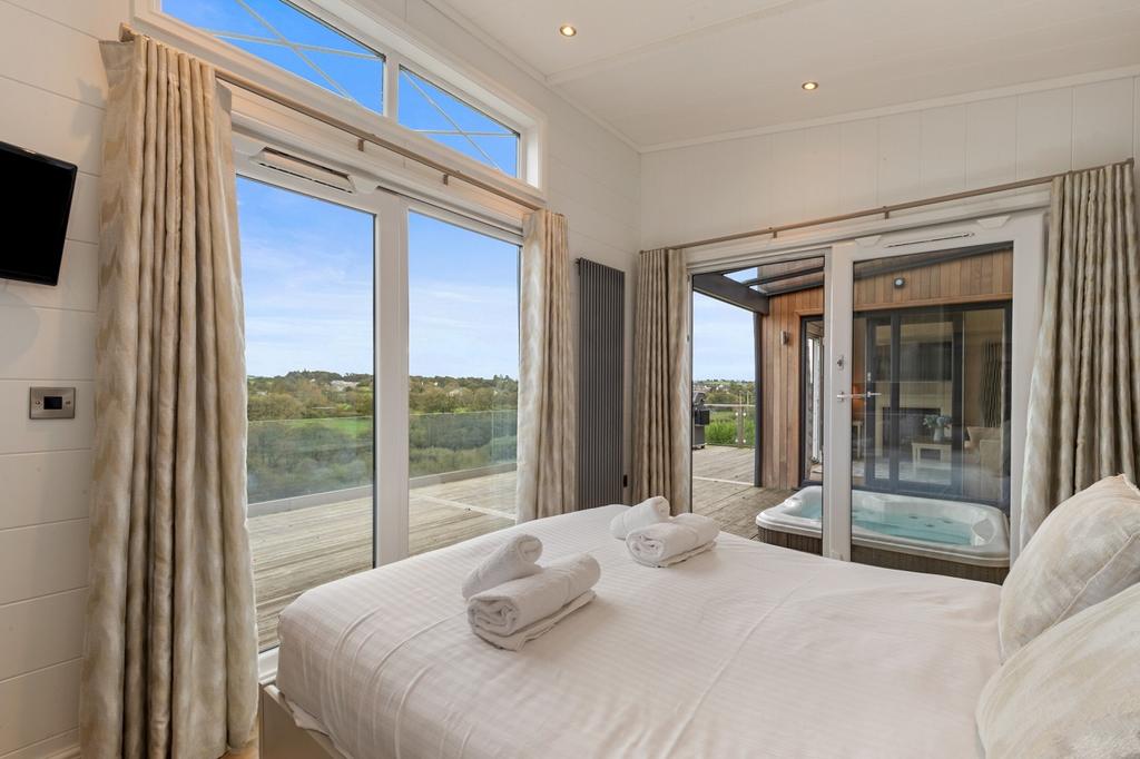The Hampton Lodges are simply in a class of their own, with architectural features including timber panelling, high-pitched ceilings, exposed beams, timber floors and neutral and ocean-inspired colours and natural materials; a true reflection of Pembrokeshire's coastal location. High-end kitchens with dishwashers, washing machines and dryers, luxurious living spaces with large L-shaped sofas, beautiful bedrooms, and stunning bathrooms provide a unique accommodation. The lodges' elevated position within the rural landscape offers outstanding, uninterrupted views across the valley towards the Brecon Beacons, from your oversized elevated decking with a private hot tub.