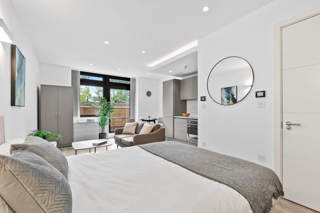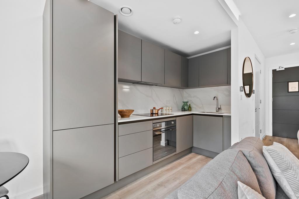 Discover this stylish studio flat at Akron House, part of Vonder Skies in Brentford. This fully furnished studio boasts sleek kitchen with modern appliances, private sleeping area and a bright bathroom. Designed with functionality in mind, the flat features large windows, wooden flooring with underfloor heating, and a secure video entry system.
