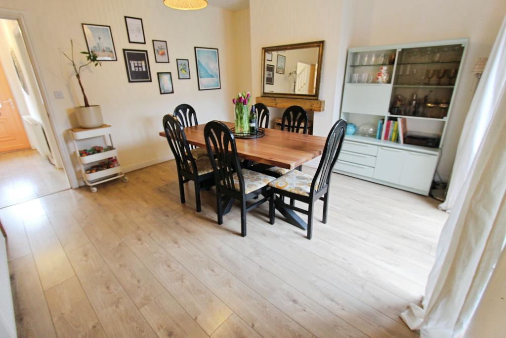 Dining Room- A spacious and versatile room, neutrally decorated with wooden-effect flooring. Patio doors open out to the rear garden, allowing plenty of natural light. The dining room also benefits from an understairs storage cupboard and direct access to the kitchen.