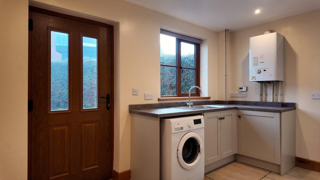 Also on the ground floor is a separate utility room, accessed via a side entrance, which includes a washing machine, and adjoining a downstairs WC.