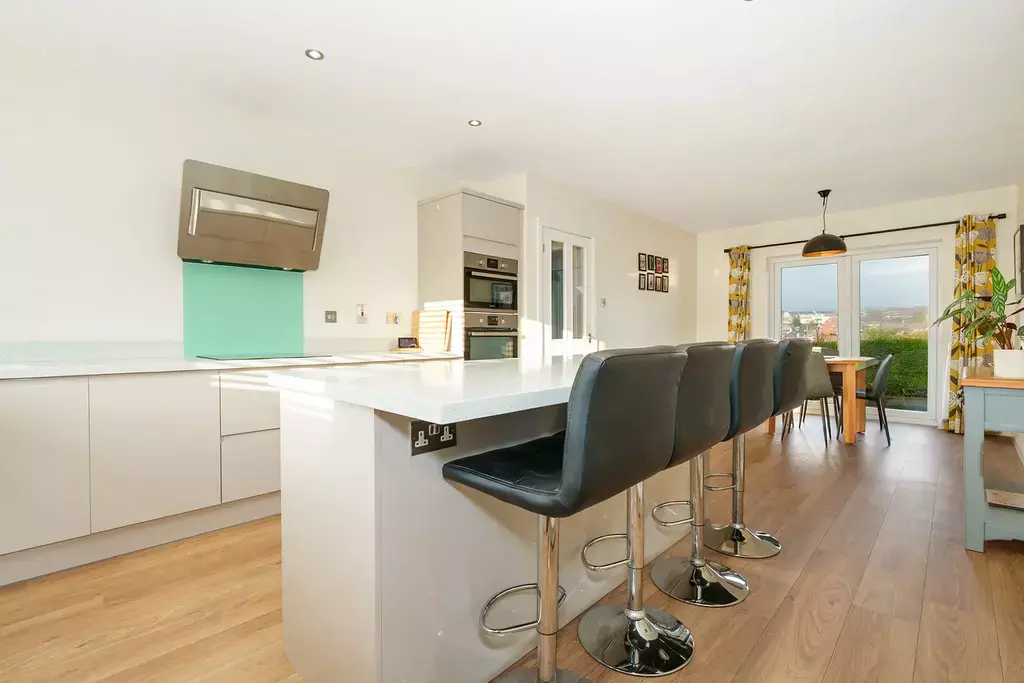 - Stunning ultra modern kitchen with large island and breakfast bar seating, utility room off and integral access to the garage
