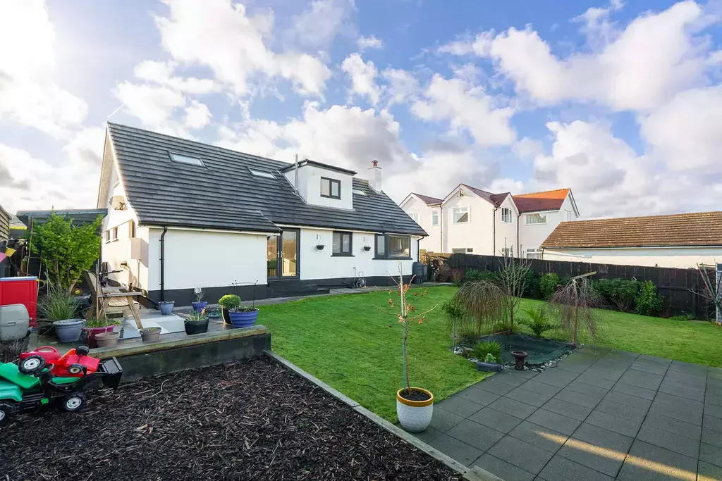 Externally, the home enjoys an attractive gated driveway providing off-road parking for multiple vehicles and access to the integral garage. The lawned garden is bordered by established shrubs and enjoys far-reaching views towards Snaefell, creating a delightful outdoor setting.