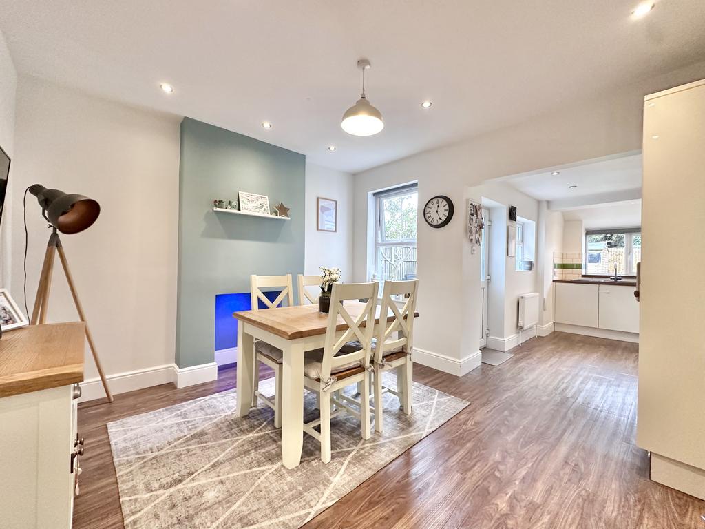 The lounge is at the front of the property with a UPVC double glazed bay window to the front aspect. Wood laminate flooring and built in storage are further features of the lounge area.