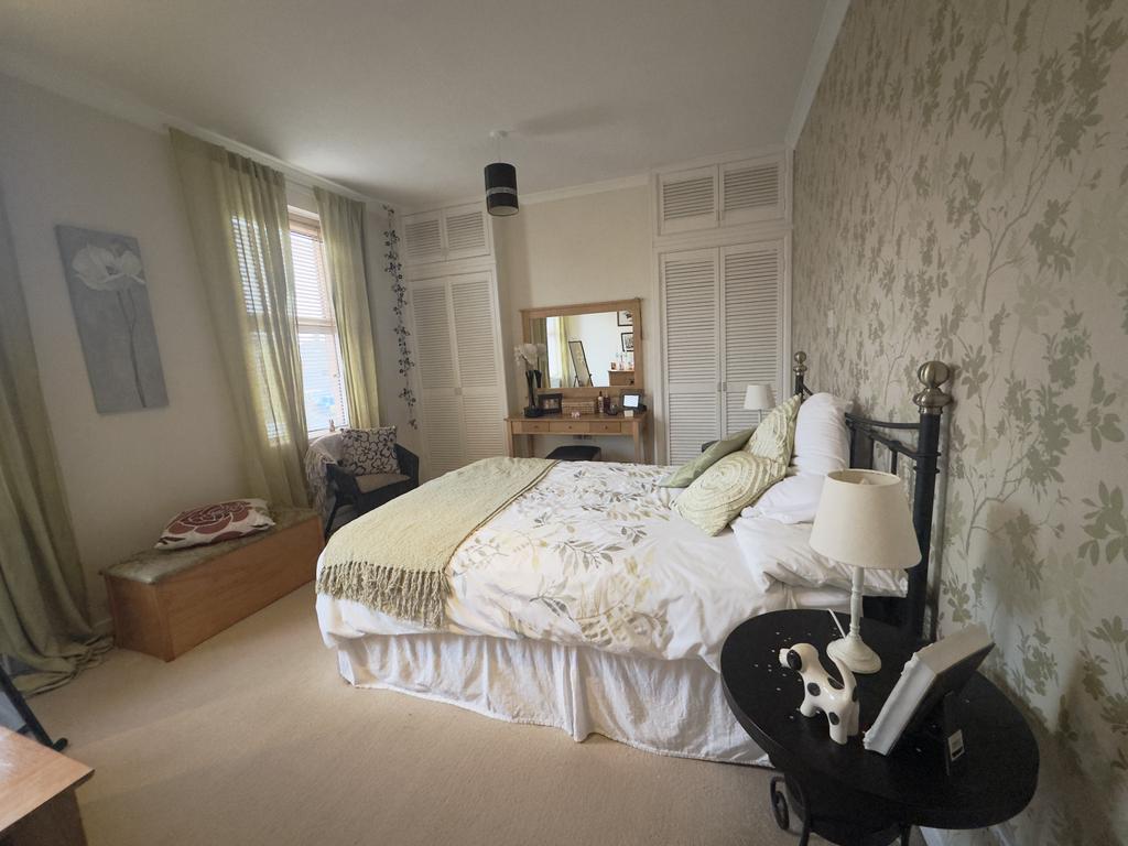 The main bedroom is a generous room that runs the full width of the house. This allows plenty of space for bedroom furniture and gives flexibility in how the room is arranged. Built-in wardrobes provide good storage. Dual windows bring in lots of natural light, making the room feel bright and comfortable.