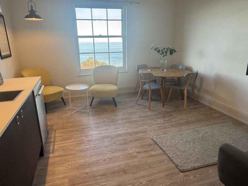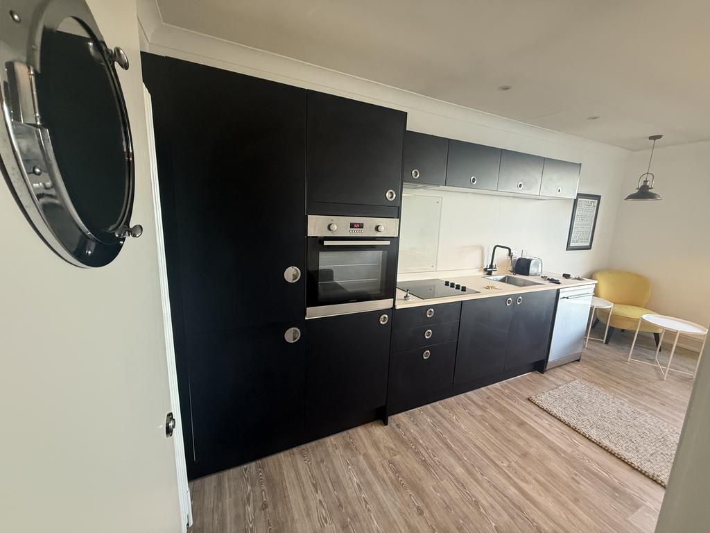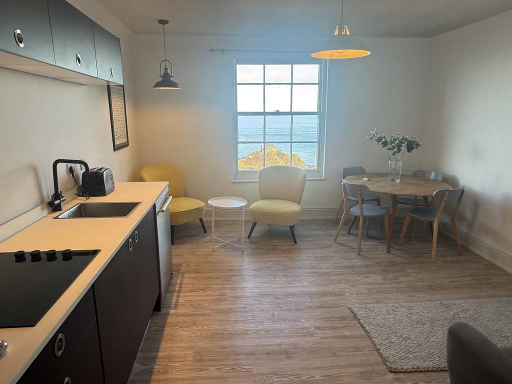 The heart of the apartment is a bright open-plan lounge, dining and kitchen area, perfectly designed to maximise the breath-taking sea views and ideal for a single or professional couple.