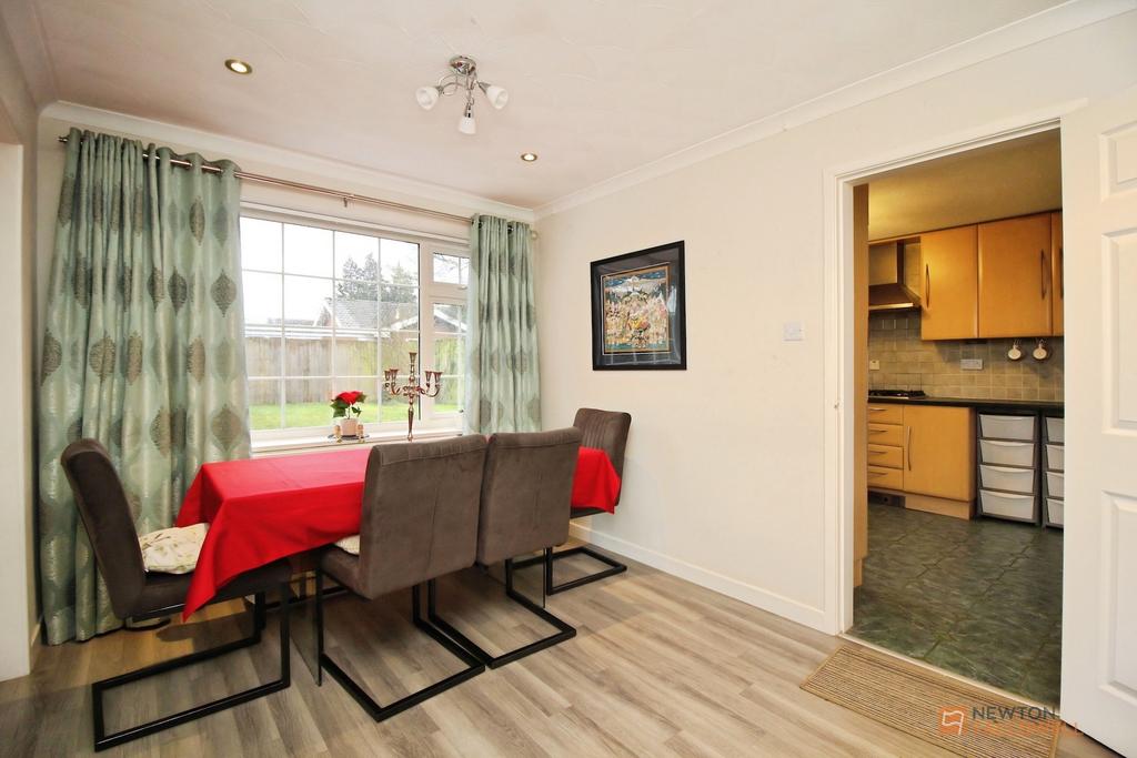 Set back from the road, the plot offers a driveway providing access to a double garage. Secure side access leads to the rear garden with lawned area, patio, flower, trees and shrubs border, fenced boundaries.