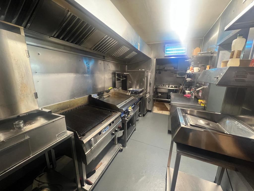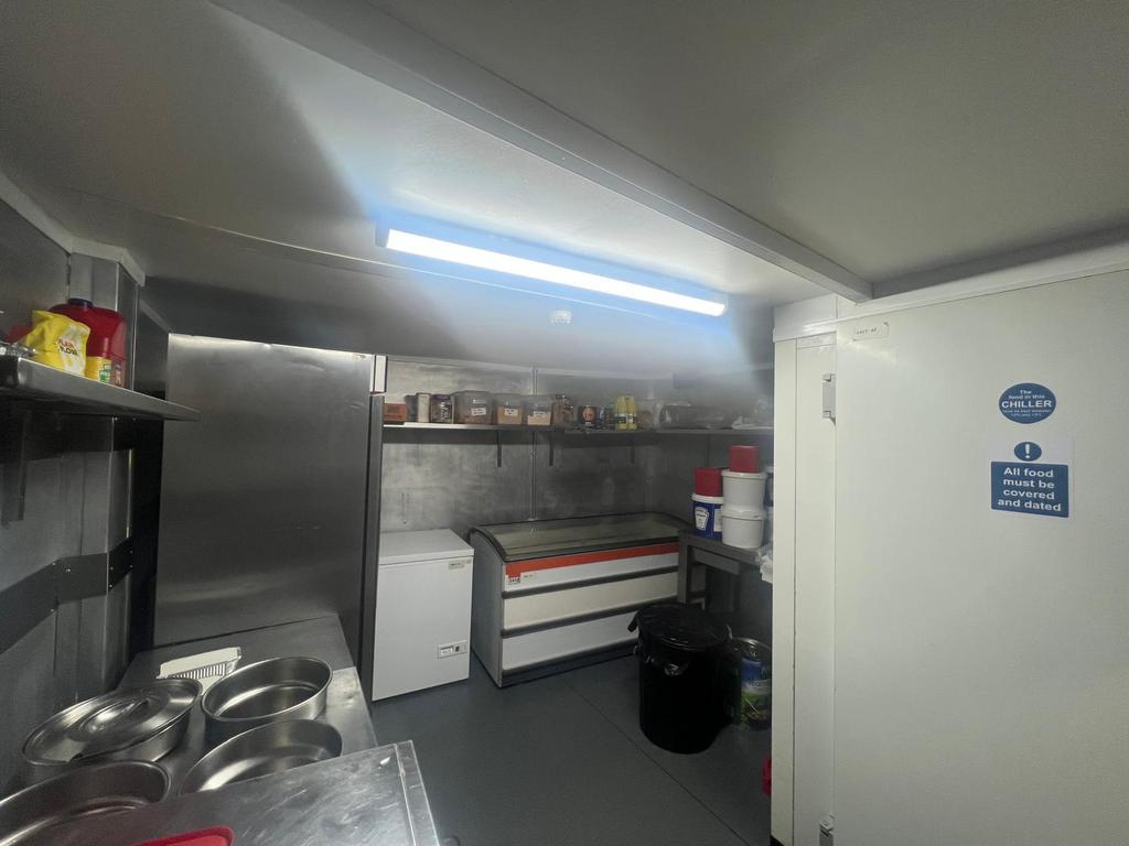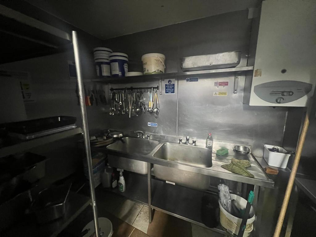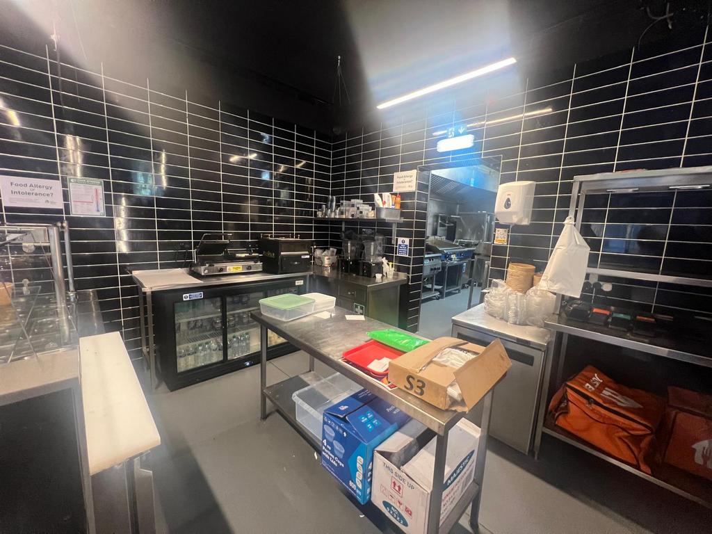 Included front-of-house equipment comprises cold and hot displays, two milkshake blenders, and an under-counter drinks fridge. The commercial kitchen is professionally equipped, featuring a grill, griddle, dedicated kebab machine, 2-burner gas hob, steamer, 2-door table fridge, pair of chest freezers, tall freezer, and a cold room – all utilities are connected (gas and electricity). No business rates are payable, offering exceptional value for the ongoing lease at £1,200 per month.
