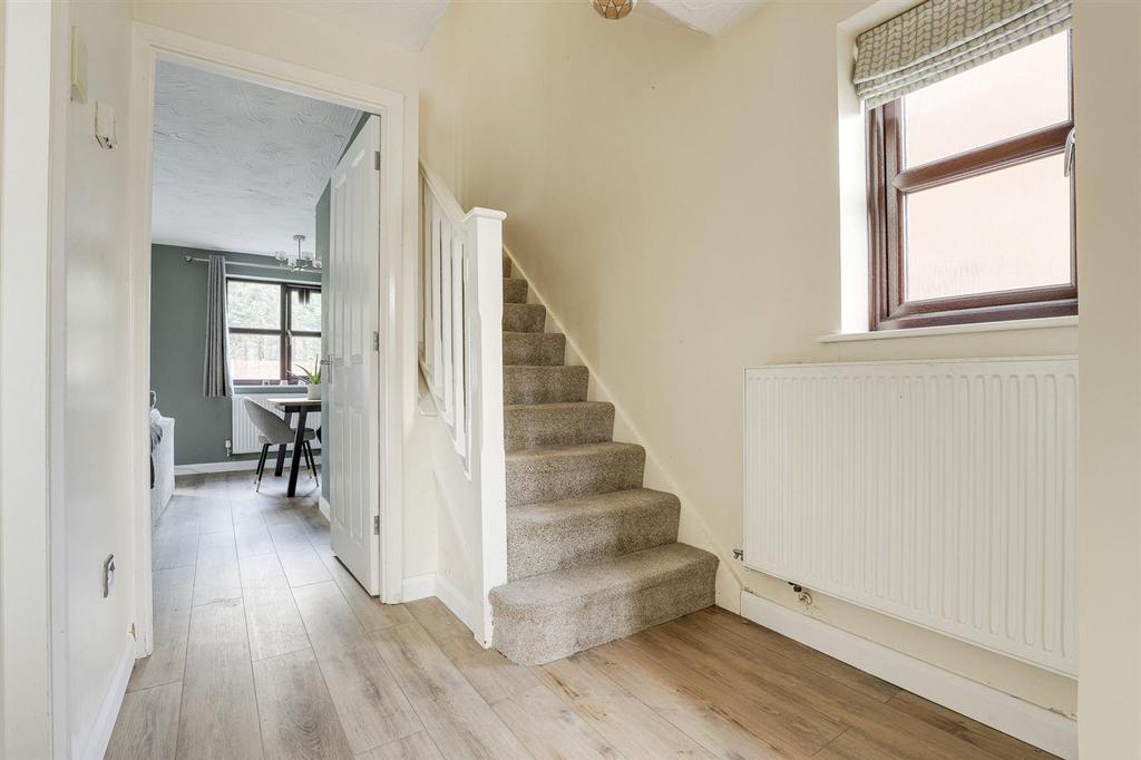Dimensions: 1.94m x 3.90m (6'4" x 12'9"). The entrance hall has a UPVC double-glazed window to the side elevation, LVT wood-effect flooring, carpeted stairs, a radiator and a single UPVC door providing access into the accommodation.