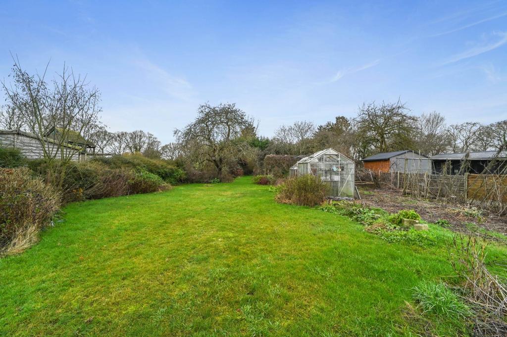 The property is approached via a substantial shingle driveway providing ample off road parking. The driveway continues to the rear, offering vehicular access to a double garage along with additional storage space.