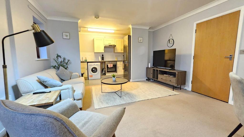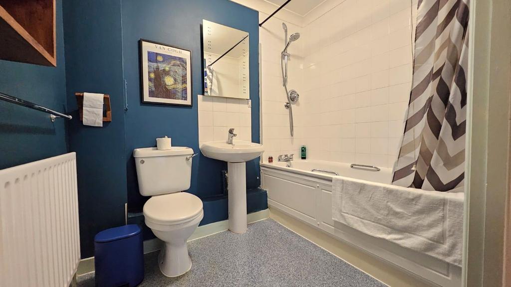 There are two well-proportioned bedrooms, both nicely decorated and offering ample space for storage. The modern bathroom is sleek and well-maintained, finished with quality fittings.