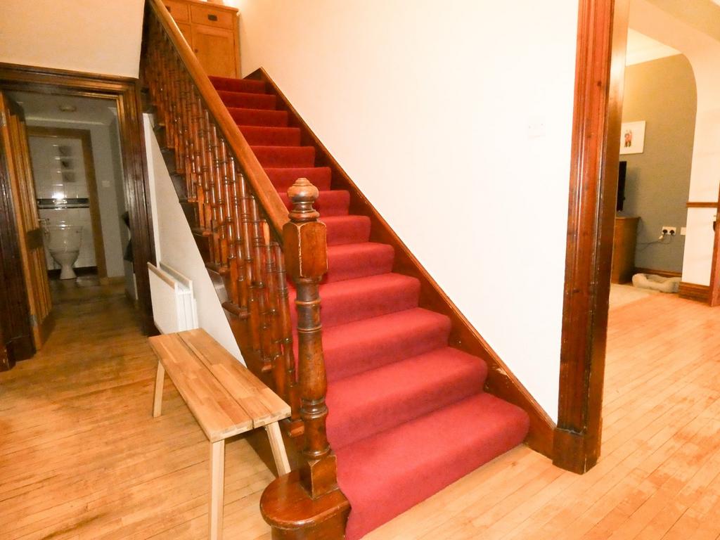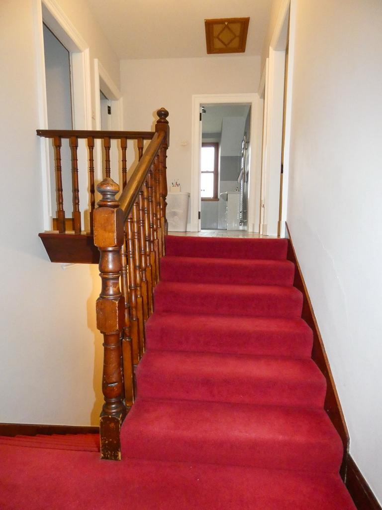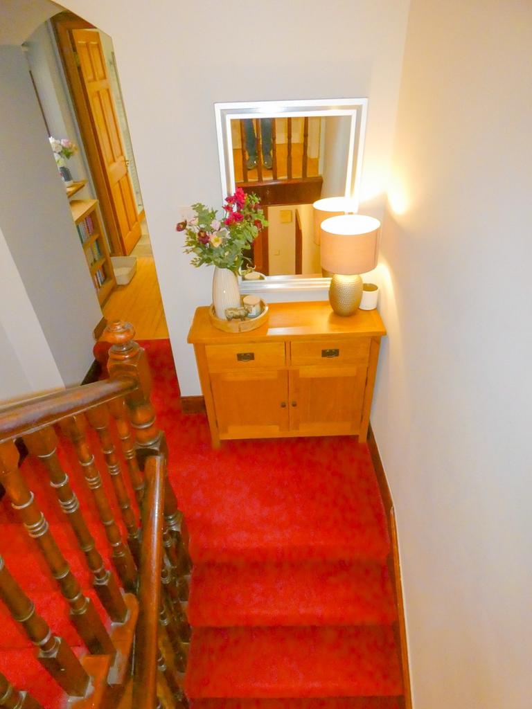 Head up the split level staircase to the landing with loft access hatch—loft is floored and has a Ramsay ladder. There is a built in shelved linen cupboard.