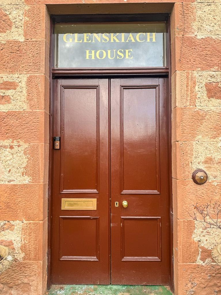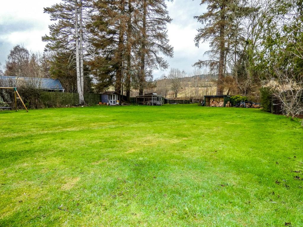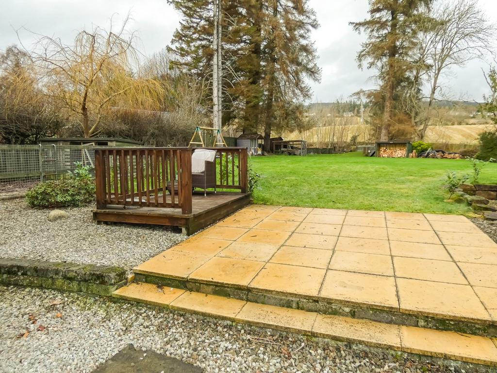 There is a driveway to the side of the property leading to the gravelled parking area at the rear. The rear is mainly laid to grass with patio areas and several outbuildings. There is a gate which gives access to the river Skiach at the top end of the rear garden.