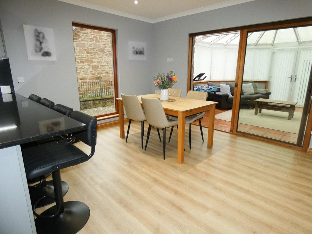 The accommodation comprises kitchen/dining room, conservatory, hallway, utility room, WC, bedroom, vestibule, living room with wood burning stove, sitting room/dining room with multi fuel stove all on the ground floor with a bathroom, four bedrooms and a shower room on the first floor.