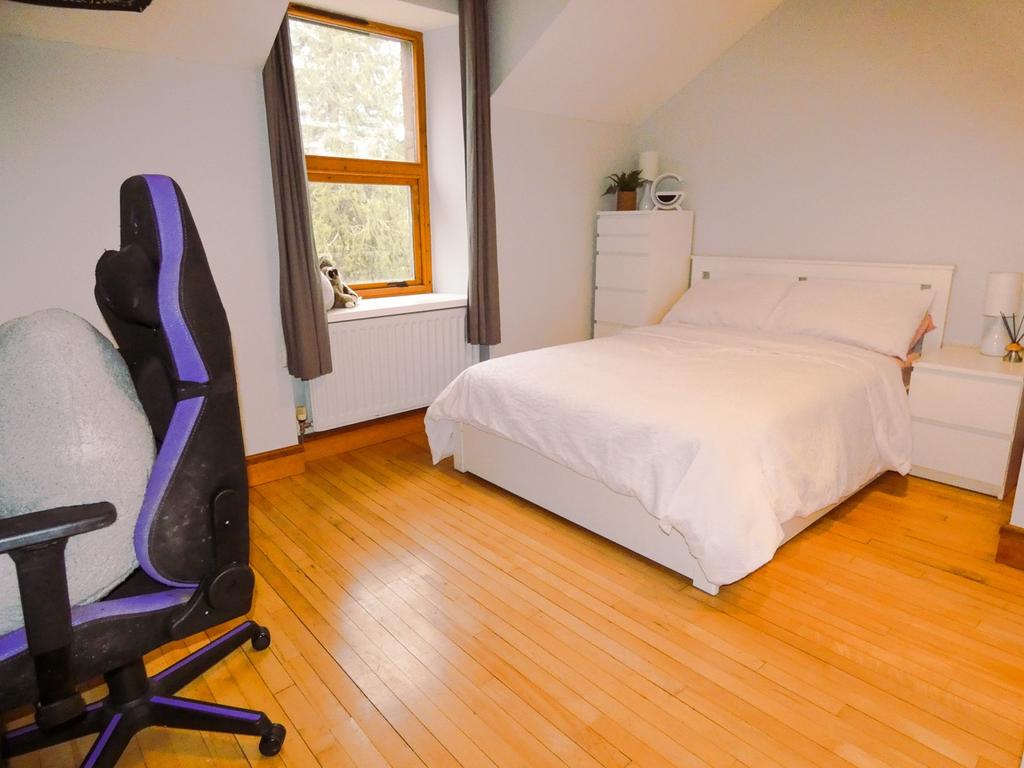 Double bedroom with South facing window. Wooden floor. Radiator.