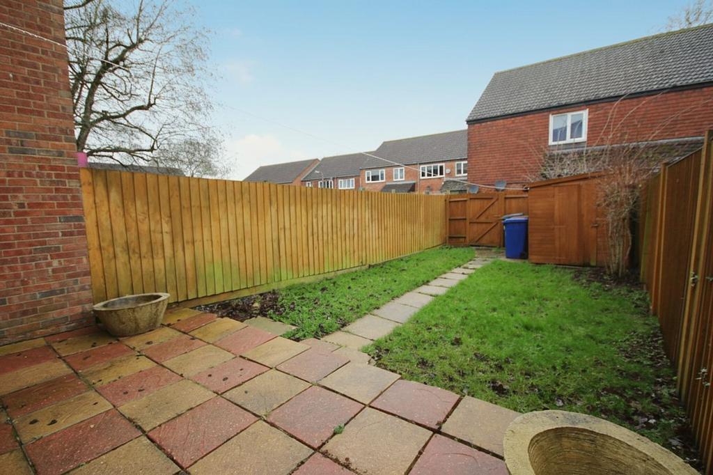 The rear garden features a patio area with pathway leading to rear pedestrian access gate and laid to lawn either side, enclosed with fencing.
