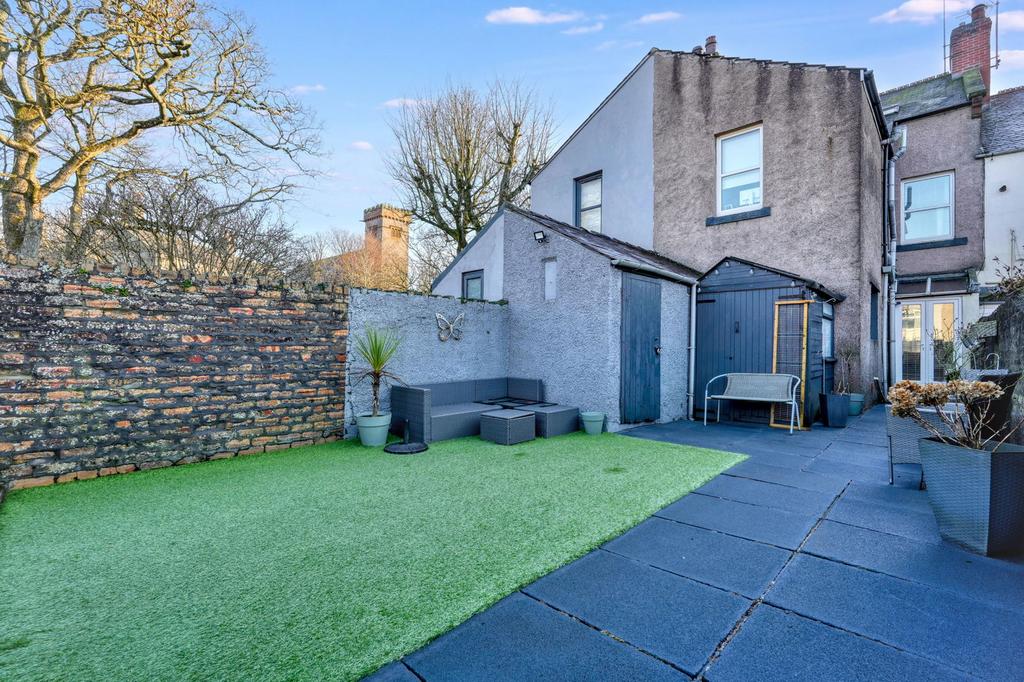 - Low maintenance garden with patio, artificial turf and a versatile outbuilding