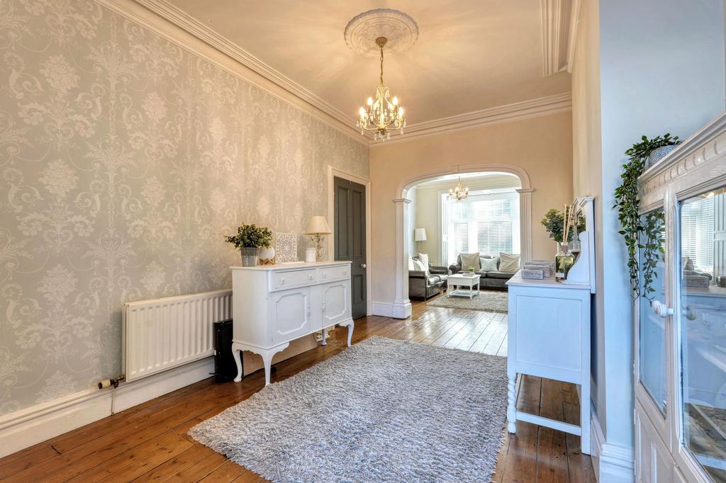 You’ll see the unique sense of style the second you step into the hallway. The modern grey colour scheme provides a contemporary contrast to the intricate period features, such as the ornate ceiling coving, the traditional wainscoting, dado rail and the classic wooden newel post on the staircase.