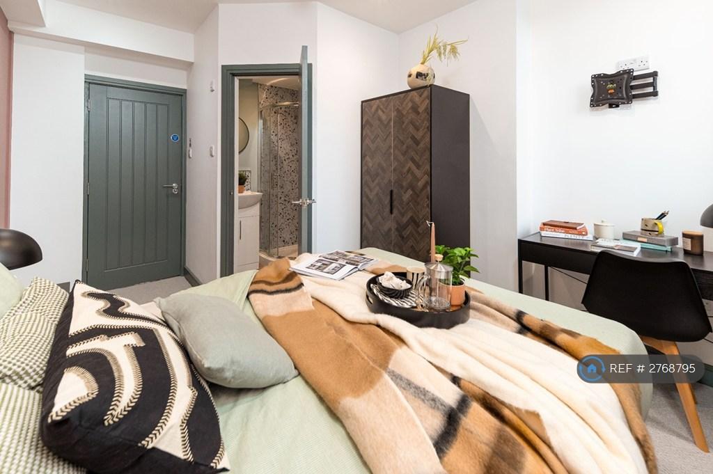 A bright, stylish space with a double bed, wardrobe, desk, and bedside table - everything you need to move straight in.