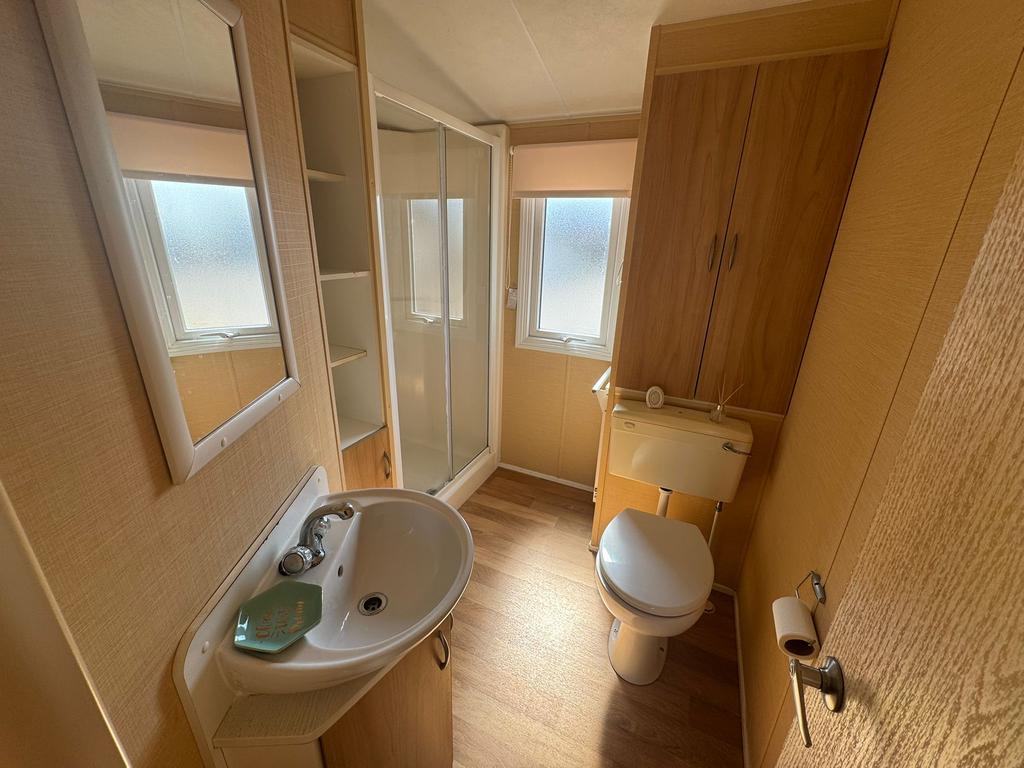 The caravan is designed with comfort in mind, offering a spacious open-plan lounge, fully fitted kitchen, two modern bathrooms (including an en-suite), and two generously sized bedrooms.