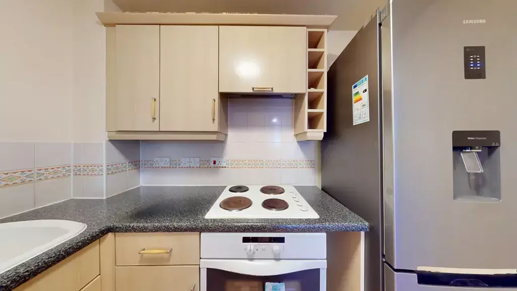 The flat features large windows that allow plenty of natural light throughout, along with generous storage and well-proportioned rooms.
