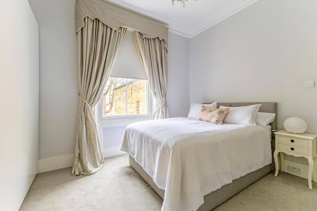 Both double bedrooms are well proportioned and filled with natural light thanks to their large sash windows. Each room includes built‑in wardrobes, ensuring excellent storage. The bathroom is a highlight of the home, boasting underfloor heating, a contemporary freestanding shower with a rainfall head, and beautifully finished tiling perfect for unwinding at the end of the day. Residents also benefit from access to a beautifully maintained, south‑west facing communal garden with bike storage.