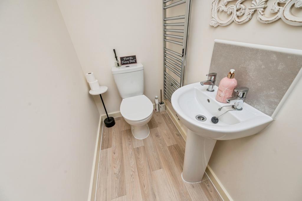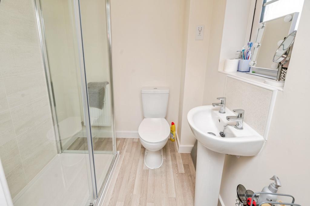 Property comprises: Welcoming hallway, with convenient guest facilities - Generous living room with triple aspect windows flooding the space with natural ight - Modern kitchen, boasting a host of integrated appliances and plenty of room for family dining - Family bathroom, with overhead shower - 3 well proportioned double bedrooms, including an en-suite shower room to the principal bedroom