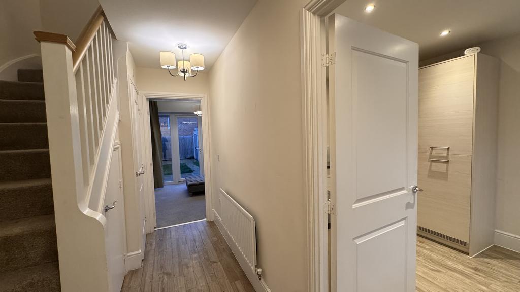 The property opens into a welcoming and spacious entrance hallway, setting the tone for the well-proportioned accommodation throughout. The fully fitted kitchen is thoughtfully laid out, offering ample storage, worktop space, and modern appliances, making it perfect for everyday cooking and family use. A convenient ground floor WC enhances practicality, while access from this level leads out to a private rear garden, ideal for outdoor dining, relaxation, or entertaining.