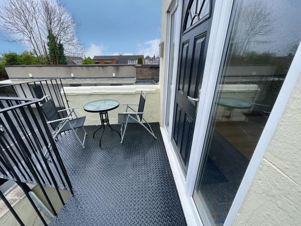 UPVC Front door to the back aspect and window to the side aspect with balcony and space for outdoor furniture.