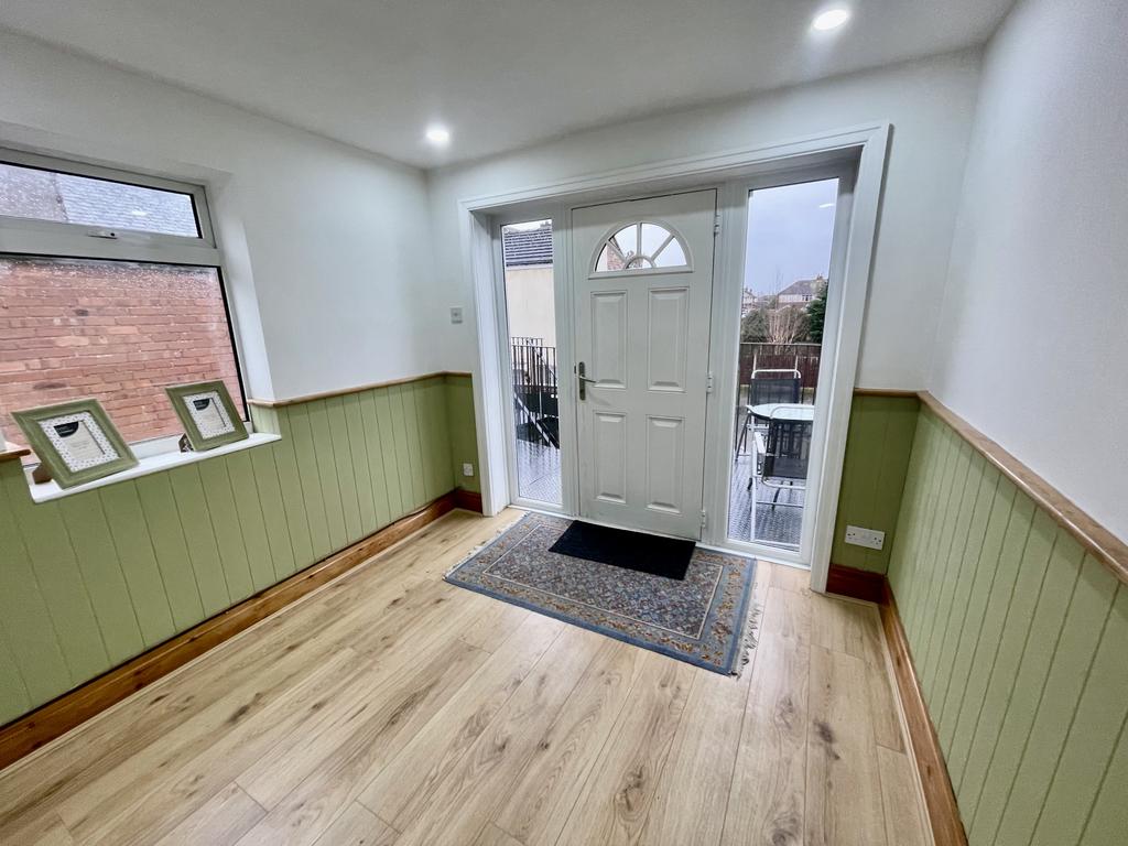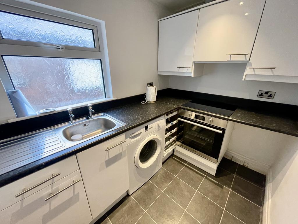 UPVC double glazed window to the side aspect, fitted wall and base units with complementary work surfaces, integrated electric oven, induction hob, stainless steel sink, plumbing for washing machine and space for under counter fridge freezer.