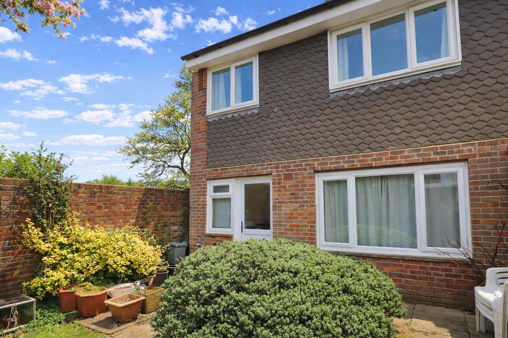 Laid to lawn with well-stocked flower and shrub borders, small sun terrace, storage shed and rear pedestrian access.