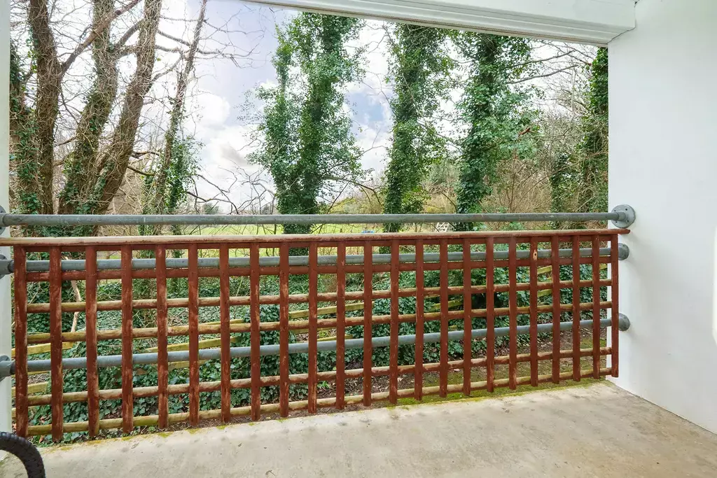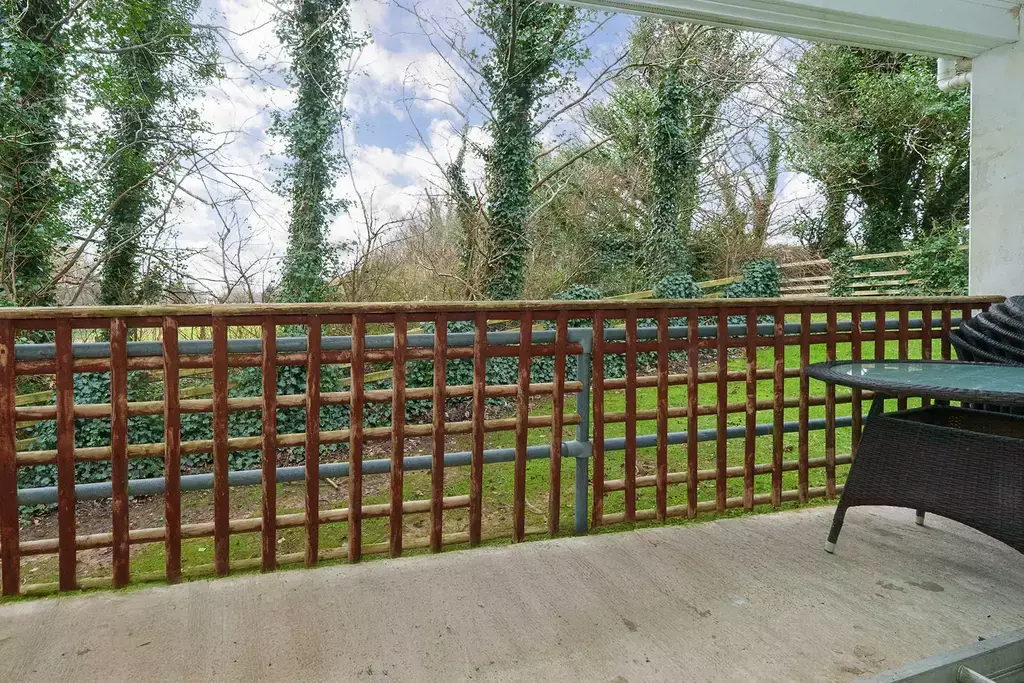 Internally, the accommodation is light and well proportioned and features a spacious open plan living, dining and kitchen area with sliding doors opening onto a balcony, which provides space for a small table and chairs and enjoys an attractive green outlook. There are two double bedrooms, with the principal bedroom benefitting from its own private balcony, and two bathrooms, including a separate shower room.